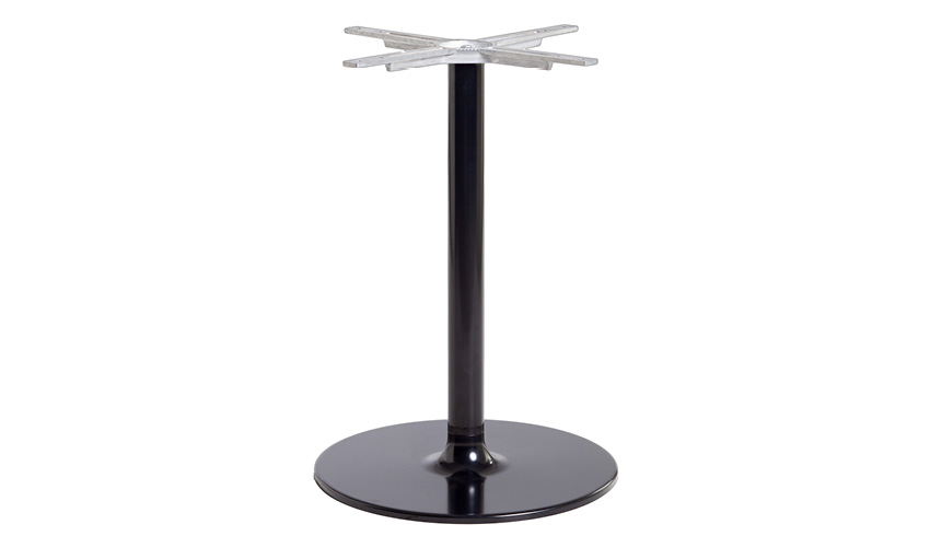 Base tonda a campana realizzata con tubo centrale tondo, fornita con sistema di fissaggio standard.