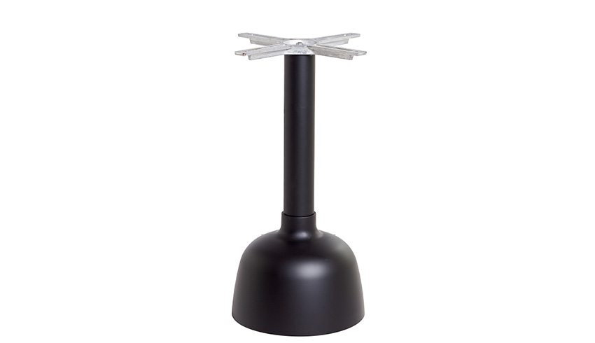 Base sagomata realizzata con tubo centrale tondo, fornita con sistema di fissaggio standard.
