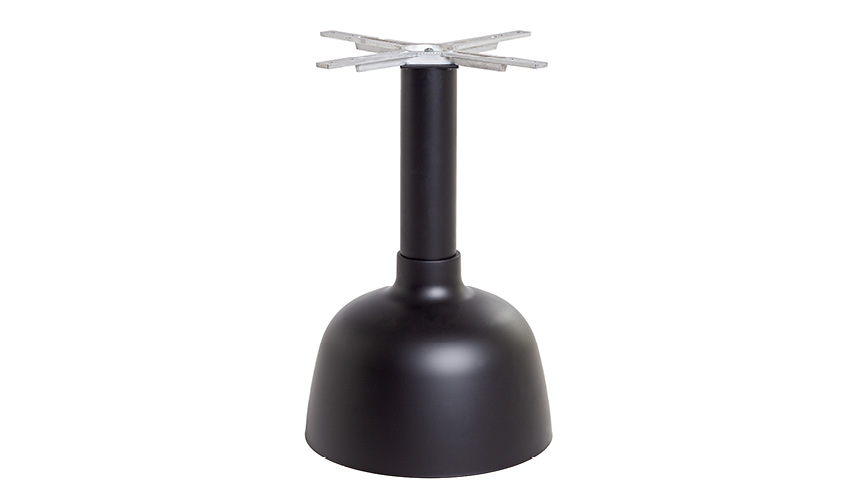 Base sagomata realizzata con tubo tondo centrale, fornita di sistema di fissaggio standard.