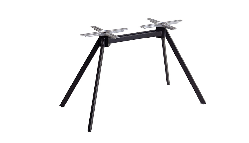 Base realizzata con tubo centrale quadrato e quattro piedi in tubo rettangolare, fornita con sistema di fissaggio standard.