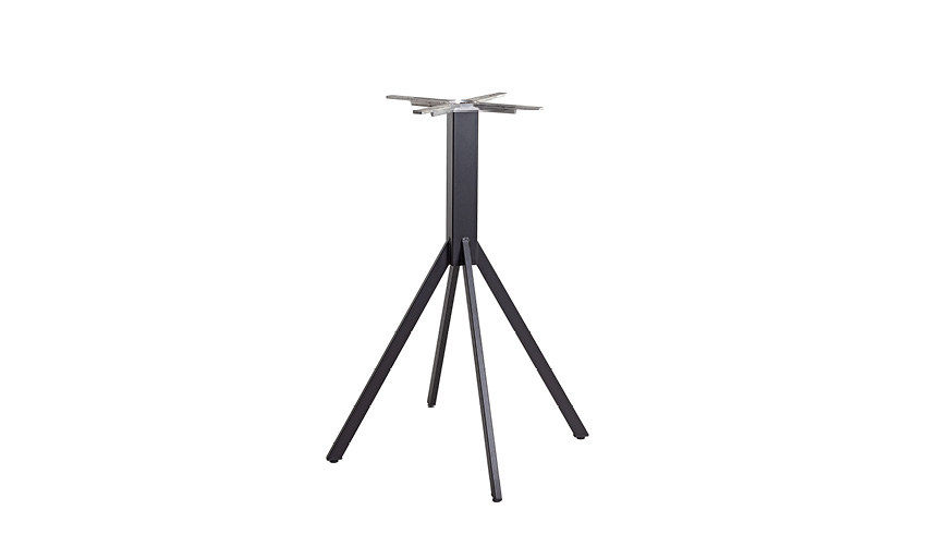 Base realizzata con fusto centrale e quattro piedi in tubo rettangolare, altezza bar, fornito con sistema di fissaggio standard.